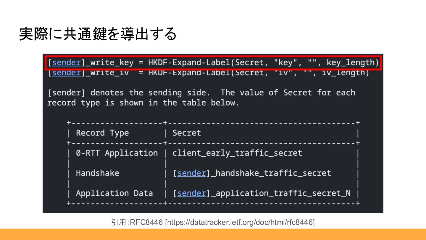 実際に共通鍵を導出する 一部抜粋:RFC8446 [https://datatracker.ietf.org/doc/html/rfc8446]