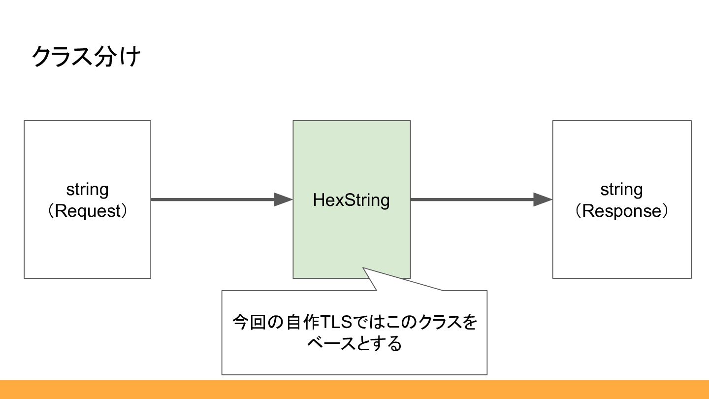 クラス分け HexString string (Request) string (Response) 今回の自作TLSではこのクラスを ベースとする