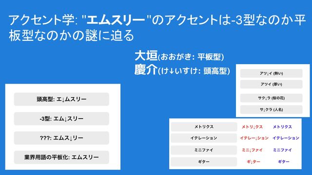 アクセント学: "エムスリー"のアクセントは-3型なのか平板型なのかの謎に迫る