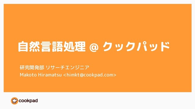 自然言語処理 @ クックパッド 研究開発部 リサーチエンジニア Makoto Hiramatsu <