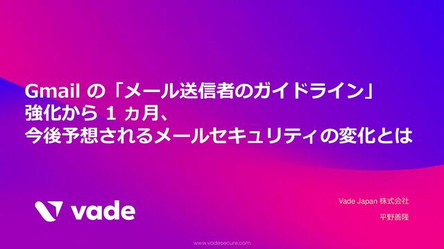Gmail の「メール送信者のガイドライン」 強化から 1 ヵ月、 今後予想されるメールセキュリティの変化とは Vade Japan 株式会社 平野善隆