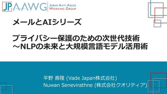 本講演では、メールセキュリティ事業者にとって重要なデータプライバシーと匿名化技術について、詳しく掘り下げて解説します。データ匿名化の基本的な概念や具体的な技術・手法を紹介し、その利点とトレードオフについても解説します。
