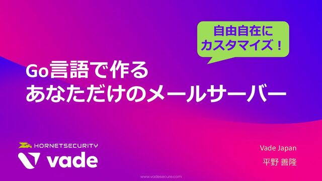 www.vadesecure.com Go言語で作る あなただけのメールサーバー Vade Japan 平野 善隆 自由自在に カスタマイズ!