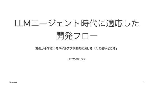 LLMΤʔδΣϯτ࣌ʹదԠͨ͠ ։ൃϑϩʔ ࣮ྫ͔ΒֶͿʂϞόΠϧΞϓϦ։ൃʹ͓͚ΔʮAIͷ͍Ͳ͜Ζʯ 2025/08/25 hiragram 1