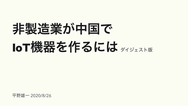 ඇۀ͕தࠃͰ IoTػثΛ࡞Δʹ μΠδΣετ൛ ฏ༤Ұ 2020/8/26