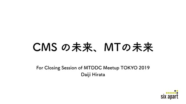 $.4ͷະདྷɺ.5ͷະདྷ 'PS$MPTJOH4FTTJPOPG.5%%$.FFUVQ50,:0 %BJKJ)JSBUB