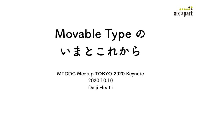 2020/10/10 に開催された MTDDC Meetup Tokyo 2020 の基調講演で発表した Movable Type のいまとこれから、のスライドです。