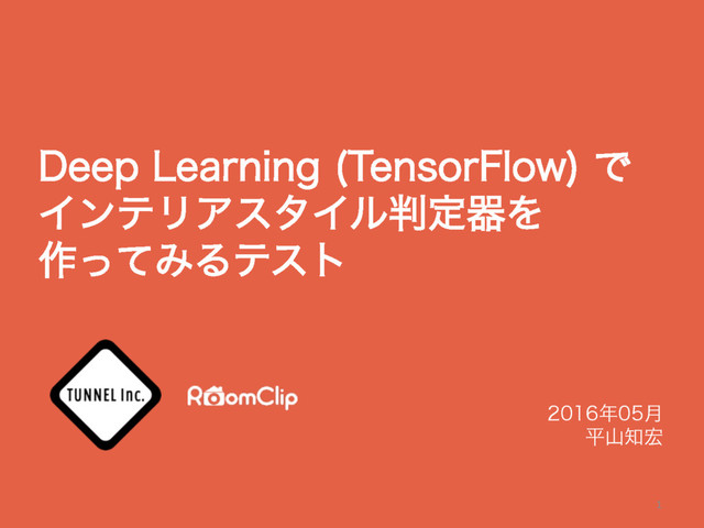RoomClip (https://roomclip.jp) にある大量の「部屋写真」を TensorFlow (https://tensorflow.org)を使って学習させ、 インテリアスタイルを分類する機械を作ってみるテスト。 Fashion Tech Talks (http://fashtech.connpass.com/event/29726/)で登壇した資料です。