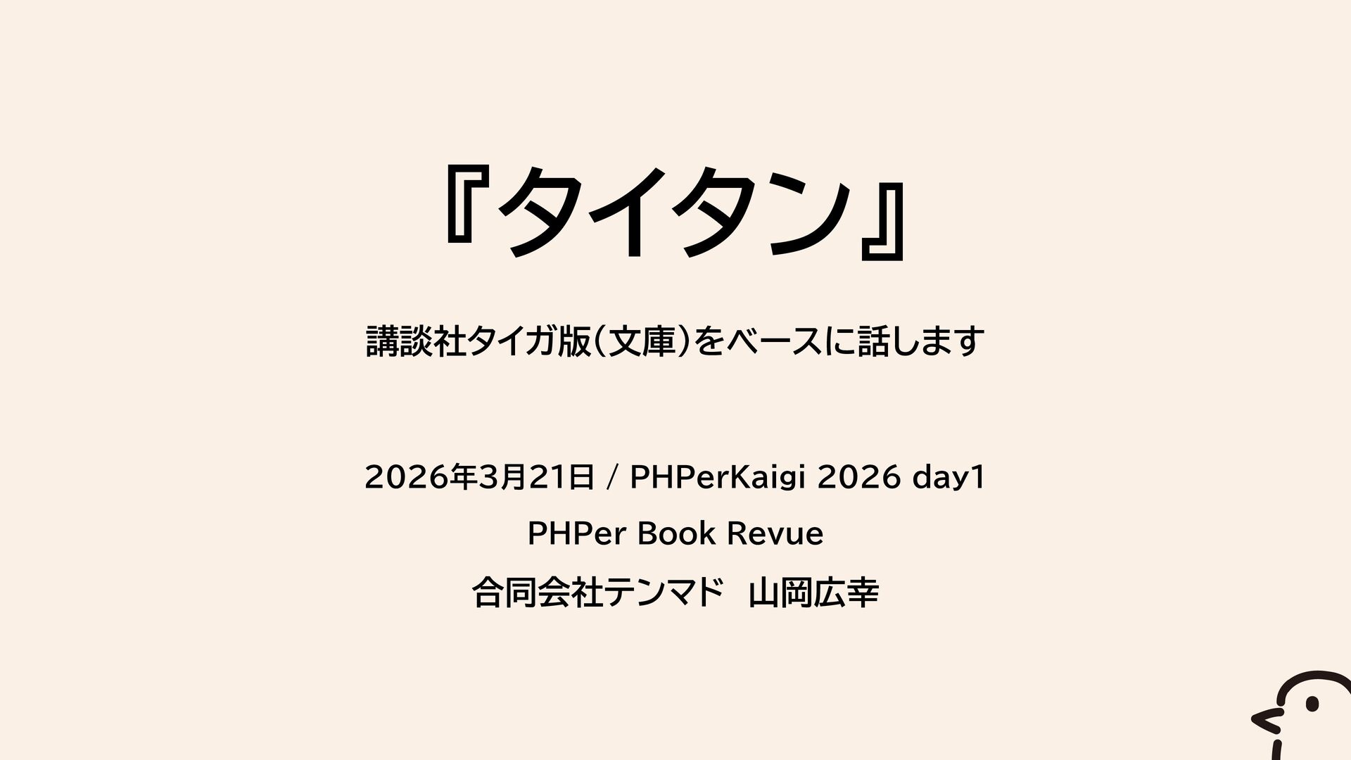 2026年3月21日、PHPerKaigi 2026 day1のPHPer Book Revueの登壇資料です。