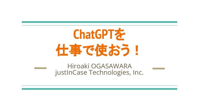 ChatGPTを 仕事で使おう! Hiroaki OGASAWARA justInCase Technologies, Inc.