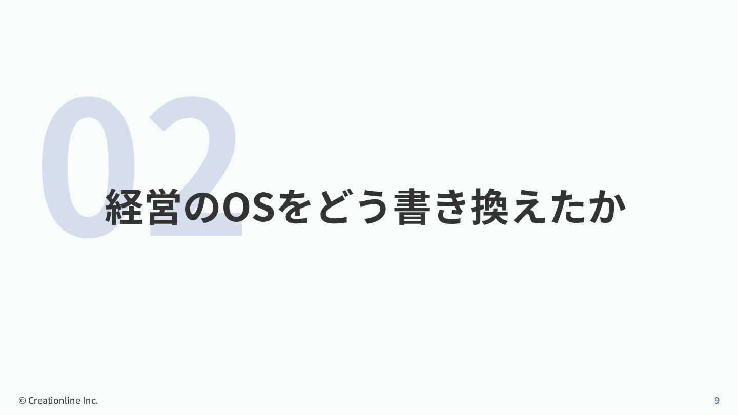 02 経営のOSをどう書き換えたか © Creationline Inc. 9