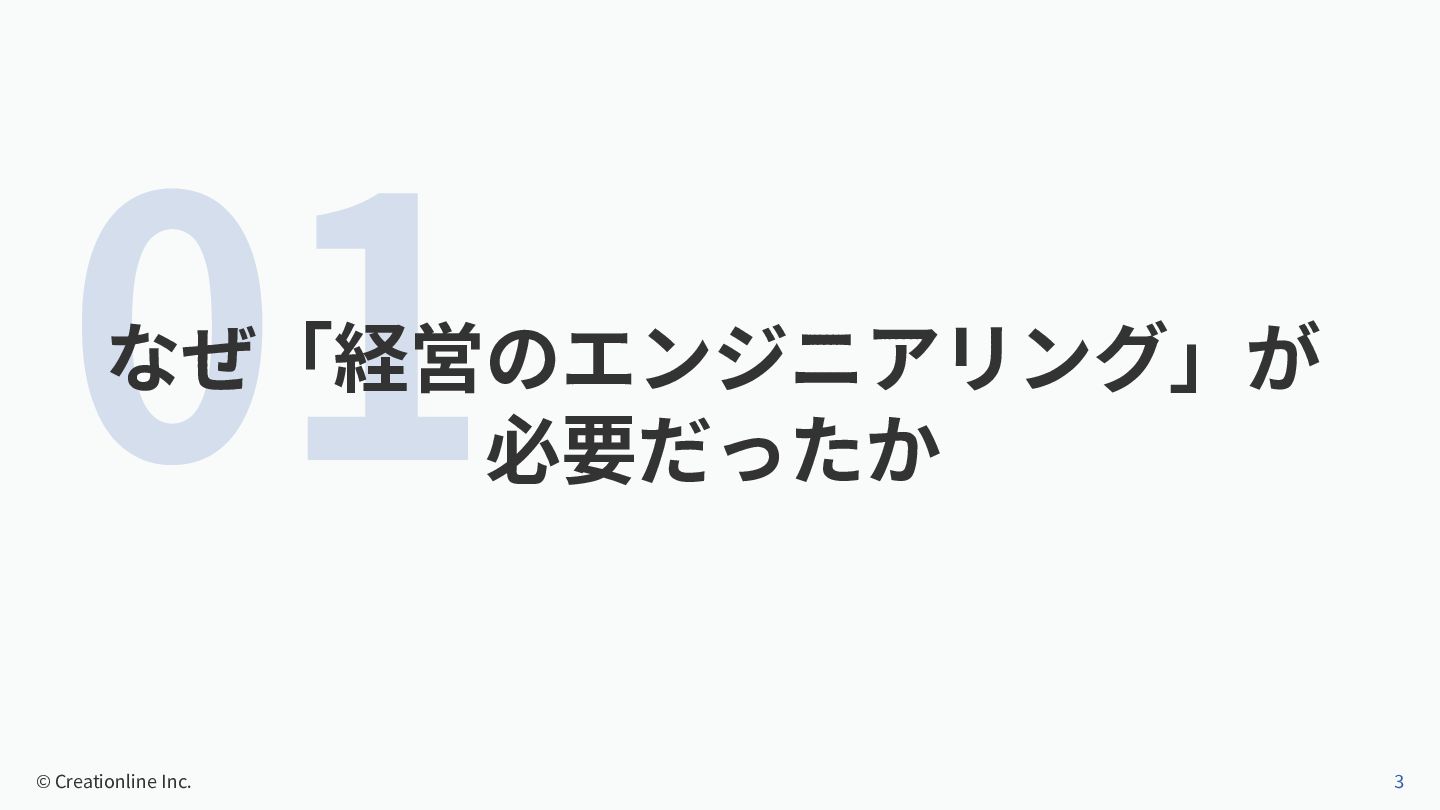 01 なぜ「経営のエンジニアリング」が 必要だったか © Creationline Inc. 3