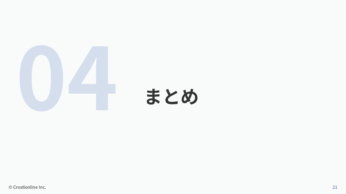 04 まとめ © Creationline Inc. 21