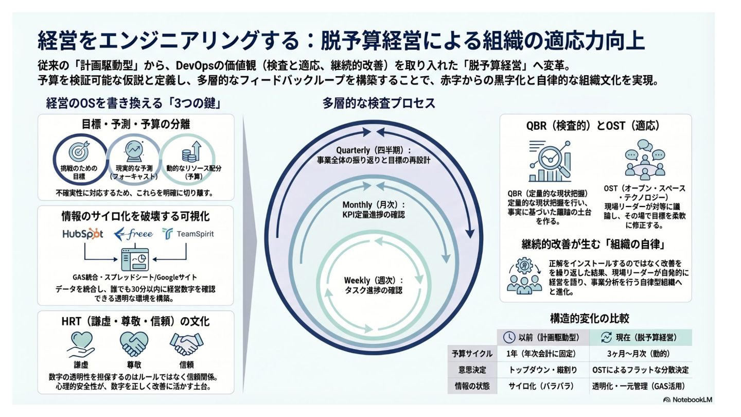 DevOpsDays Tokyo 2026 でお話した、脱予算経営 2年半の軌跡 -経営をエンジニアリングして組織の適応力を高める話- のスライドです。