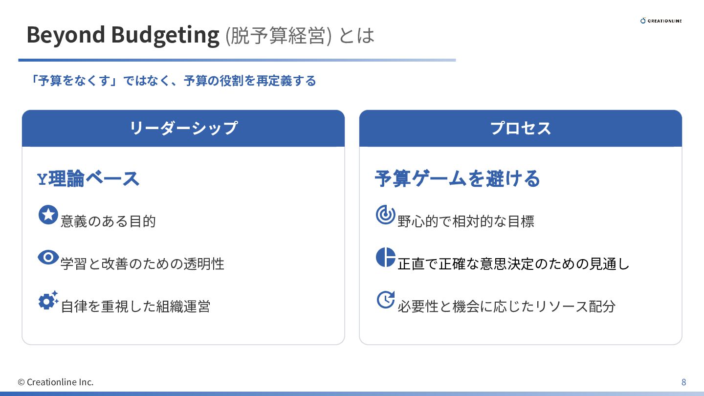 Beyond Budgeting (脱予算経営) とは 「予算をなくす」ではなく、予算の役割を再定義する リーダーシップ Y理論ベース 意義のある⽬的