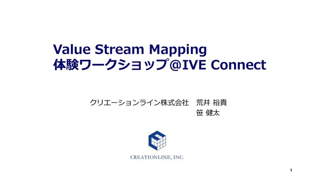 1 Value Stream Mapping 体験ワークショップ@IVE Connect クリエーションライン株式会社 荒井 裕貴 笹