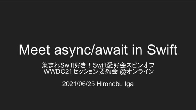 Meet async/await in Swift 集まれSwift好き!Swift愛好会スピンオフ WWDC21セッション要約会 @オンライン 2021/06/25 Hironobu Iga