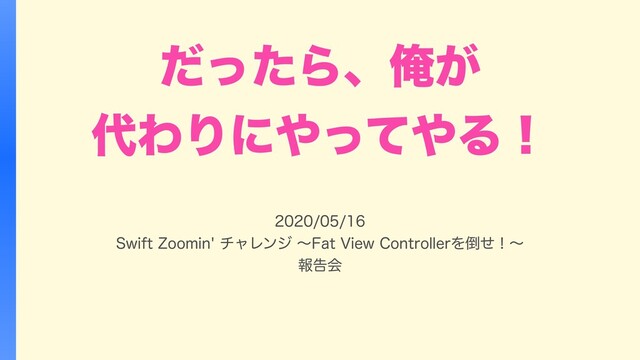 Swift Zoomin' の Fat View Controllerを倒せ! 報告会の発表スライドです。