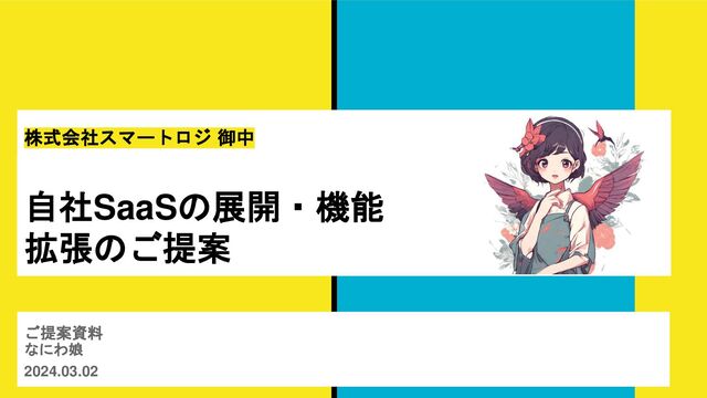 This is a proposal document for a fictional company presented by the JAWS-UG DE&I team 'Naniwa Musume' at JAWS DAYS 2024 on 2 March.