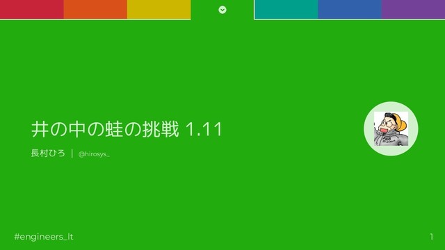 #engineers_lt 井の中の蛙の挑戦 1.11 長村ひろ | @hirosys_ 1