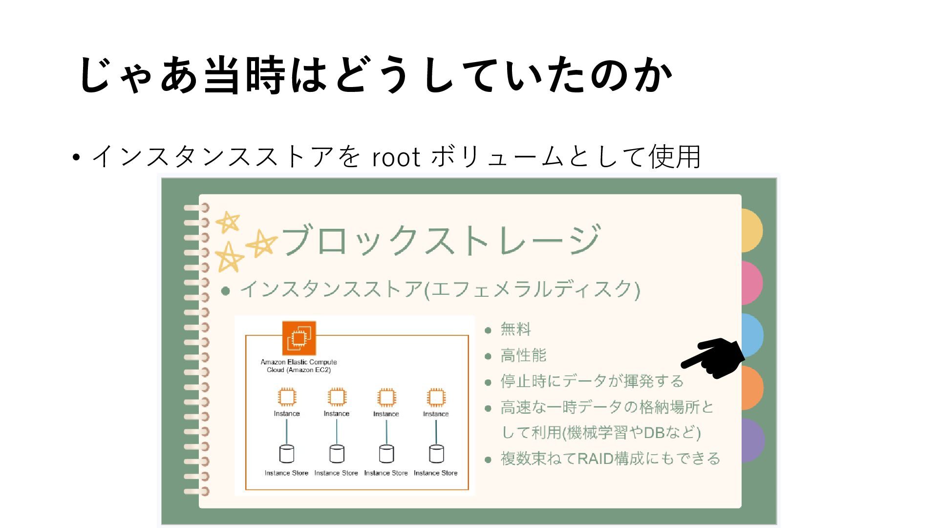 じゃあ当時はどうしていたのか • インスタンスストアを root ボリュームとして使用