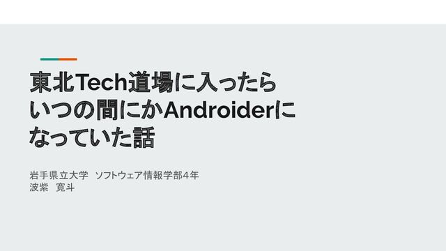 東北Tech道場に入ったら いつの間にかAndroiderに なっていた話 岩手県立大学 ソフトウェア情報学部4年 波紫 寛斗