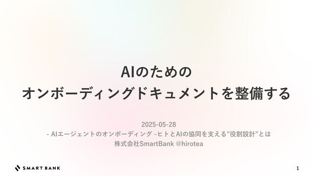 "*ͷͨΊͷ ΦϯϘʔσΟϯάυΩϡϝϯτΛඋ͢Δ "*ΤʔδΣϯτͷΦϯϘʔσΟϯάώτͱ"*ͷڠಉΛࢧ͑Δzׂઃܭzͱ גࣜձࣾ4NBSU#BOL!IJSPUFB