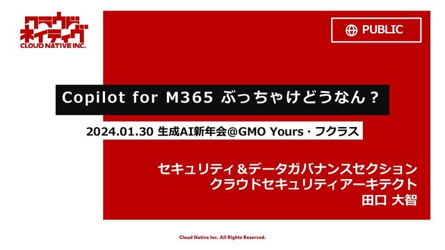 Microsoft 365 プラットフォームに組み込まれた⽣成AIアシスタン トです。 ※. 2024年1⽉30⽇時点の検証結果や Microsoft-365-Copilot-Adoption-Guide-Workbook を元に筆者作成。 Word Writing • 最初のドラフトを 作成する • さらにコンテンツ を追加する Reading • ⻑い⽂書を要約す る • ⽂書の内容につい て質問する Excel Writing • 関数を作成する Power Point Writing • 下書きを作成する • コンテンツを追加 する • コンテンツと形式 を編集する • 既存のコンテンツ を PPT に変換する Reading • PPT の内容を要約 する • 次のステップを抽 出する Outlook Writing • メールのドラフト を作成する Reading • ⻑いメールスレッ ドを要約する Teams In-meeting • これまでの議論に ついて質問する • 会議のまとめ Post-meeting • メモとアクション を作成する • 要約とクエリ Chat • コンテンツについ ての要約や質問を する Loop Writing • アイデア出し (ブレスト) • 企画の⽴案 • 下書きの⽣成 (英語のみ)