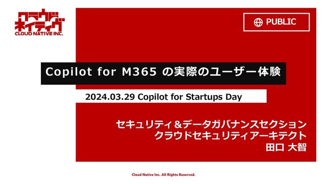 Microsoft 365 プラットフォームに組み込まれた⽣ 成AIアシスタントです。 ※. 2024年1⽉30⽇時点の検証結果や Microsoft-365-Copilot-Adoption-Guide-Workbook を元に筆者作成。 Word 作成 • 最初のドラフトを作 成する • さらにコンテンツを 追加する 理解 • ⻑い⽂書を要約する • ⽂書の内容について 質問する Excel 作成・編集 • 数式列の⽣成 • 並び替え 理解 • 特定の情報を強調表 ⽰する • 内容について質問す る Power Point 作成・編集 • 下書きを作成する • コンテンツを追加する • コンテンツと形式を編 集する • 既存のコンテンツを PPT に変換する 理解 • PPT の内容を要約する • 次のステップを抽出す る Outlook 作成・編集 • メールのドラフトを 作成する Reading • ⻑いメールスレッド を要約する Teams MTG中 • これまでの議論につ いて質問する • 会議のまとめ MTG後 • メモとアクションを 作成する • 要約とクエリ チャット • コンテンツについて の要約や質問をする Loop 作成・編集 • ⽂書構成 そ の 他 M365⽔準の セキュリティ Microsoft 365 Chat Web (Bing) 最新モデルの 優先利⽤ プラグイン OneNote 作成・編集 • 企画⽴案・アイデア 出し • 下書きの⽣成 GPT-4-Turbo 組織データと 対話