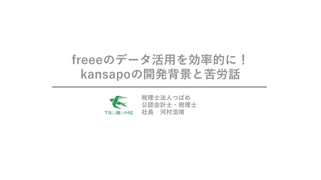 出会い、kansapoの構想(監査法人 監査を効率化したい!)を共有 2018年4月 kansapo 開発開始 Nportの開発経験を生かして 比較的スムーズに進む 2019年2月 監査法人監査を受ける 会社向けなのでデータ が重い問題多発・・・ (特に取引先別の試算表) AI月次監査 サービス停止メール AI月次監査のバトンを 勝手に受け取る 2020年5月 kansapo本リリース! 弊法人のお客様に 使っていただいていたが アプリストアに登録し本格リリース 2020年11月 2020年12月 freeeアプリアワード2020 大賞受賞! データ重すぎて 同期できない。。。 kansapoにチェック 機能を実装! 運命的な 出会い freee APIで 実現する リアルタイム監査 増減分析しようとしても freeeの中身がキレイ じゃないと意味がない 問題勃発 タグ未選択とか マイナス残高を なくしたい! 専門的な判断と単純 作業を分解する