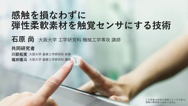 感触を損なわずに 弾性柔軟素材を触覚センサにする技術 石原 尚 大阪大学 工学研究科 機械工学専攻 講師 川節拓実 共同研究者