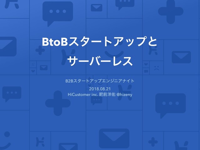 BtoBελʔτΞοϓͱ αʔόʔϨε B2BελʔτΞοϓΤϯδχΞφΠτ 2018.08.21 HiCustomer inc. ංલ༸༎ @hizeny