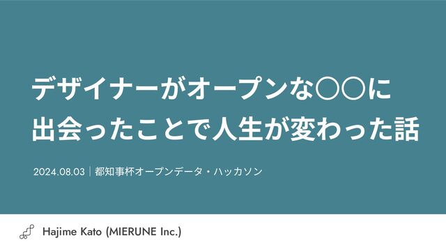 2024.08.03|都知事杯オープンデータ‧ハッカソン Hajime Kato (MIERUNE Inc.) デザイナーがオープンな〇〇に 出会ったことで⼈⽣が変わった話