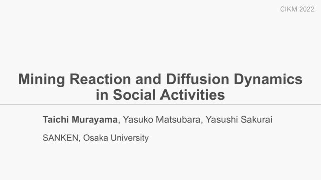 − ∑&+ 𝑐&&+ 𝑥$%&+ 𝑏& 𝜕𝑥$%& 𝜕𝑡 = 𝒇 𝑥$%& |𝝌𝒕,𝒊,: + ℊ 𝑥$%& |𝝌𝒕 , 𝒕 FLUXCUBE: 𝑔*, … 𝑔5$ =K-means UMAP 𝒂𝒊, 𝒃𝒊, 𝑪𝒊 , 𝑖 = [1, … , 𝐿] Grouping each areas Parameters in Reaction term of each country Number of countries Reaction term taylor swift lady gaga beyonce katy perry maroon 5 stevie wonder Group A: Russia, Mexico, Spain, Vietnam, etc. Group B: United Kingdom, Germany, France, etc. Group C: United States, Canada, Australia, etc. Group D: Iran, Pakistan, Brazil, Argentina, etc. Group E: China, Japan, Vietnam, South Africa, etc. We find suitable number of area groups (𝑑!) by Model Description Cost (MDL)