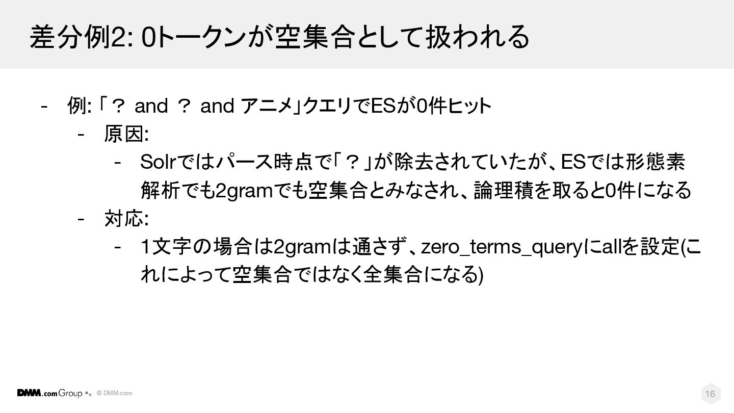 © DMM.com 16 差分例2: 0トークンが空集合として扱われる - 例: 「? and ?