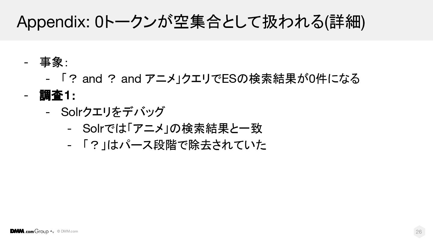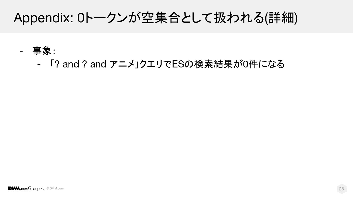 © DMM.com 25 Appendix: 0トークンが空集合として扱われる(詳細) - 事象: - 「? and