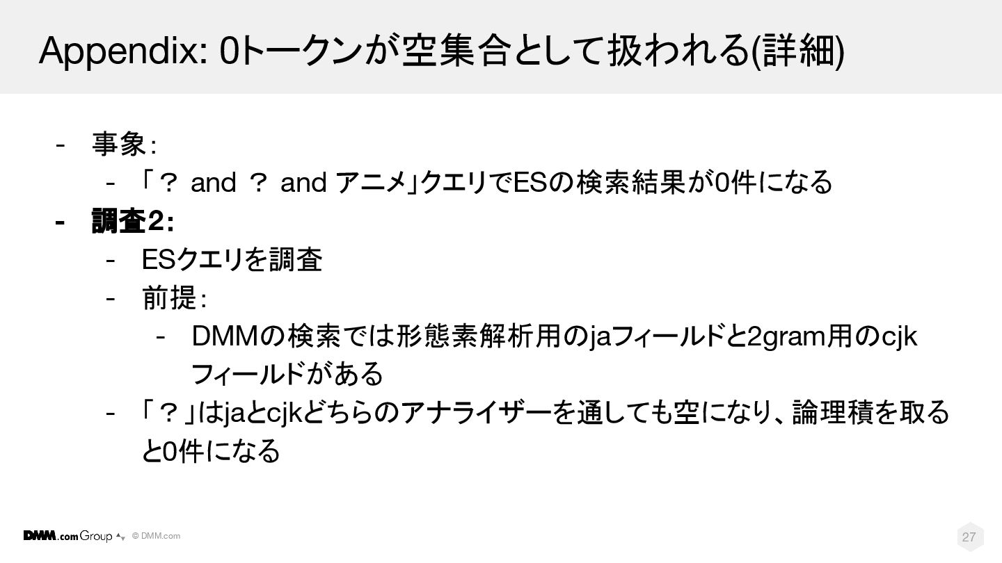 © DMM.com 26 Appendix: 0トークンが空集合として扱われる(詳細) - 事象: - 「? and