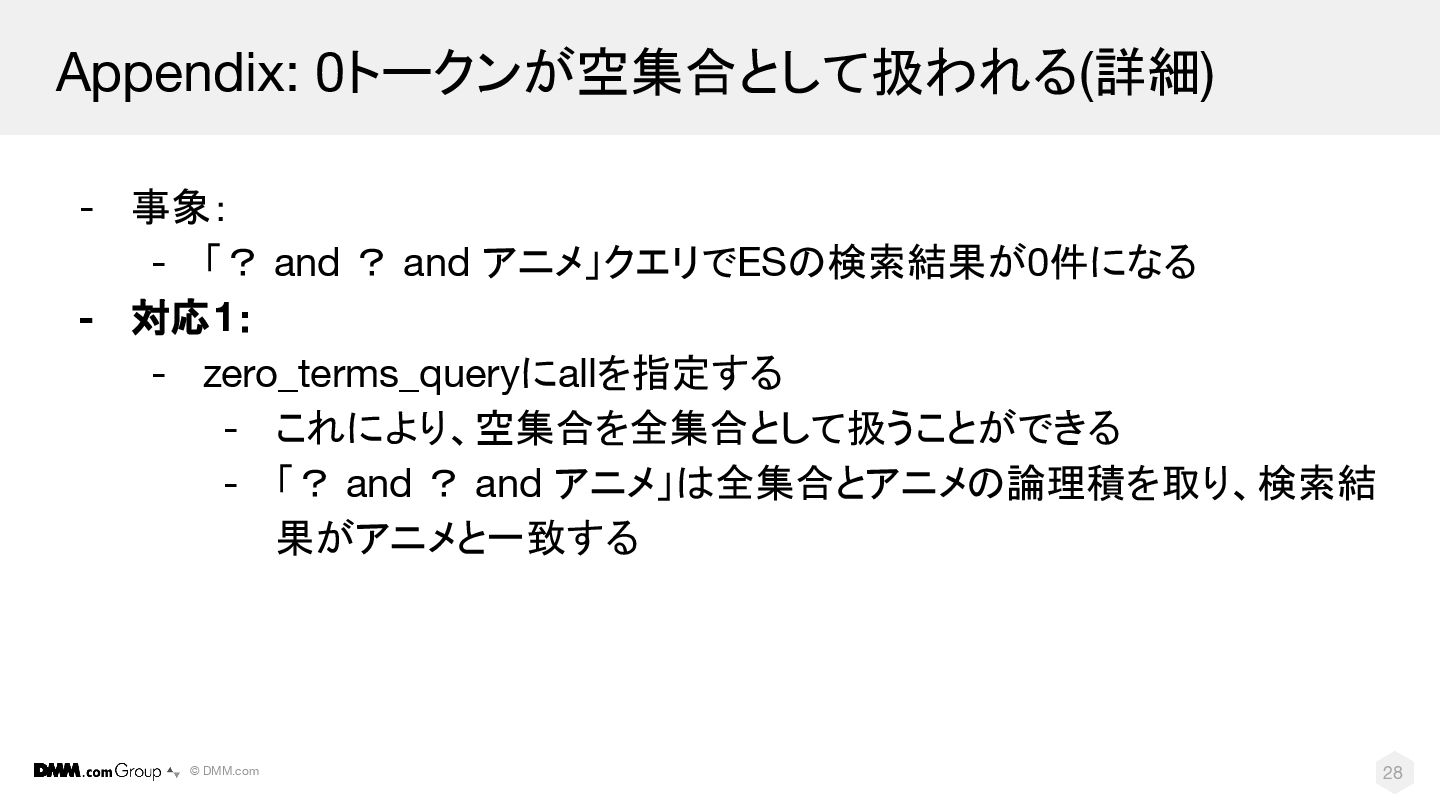 © DMM.com 27 Appendix: 0トークンが空集合として扱われる(詳細) - 事象: - 「? and