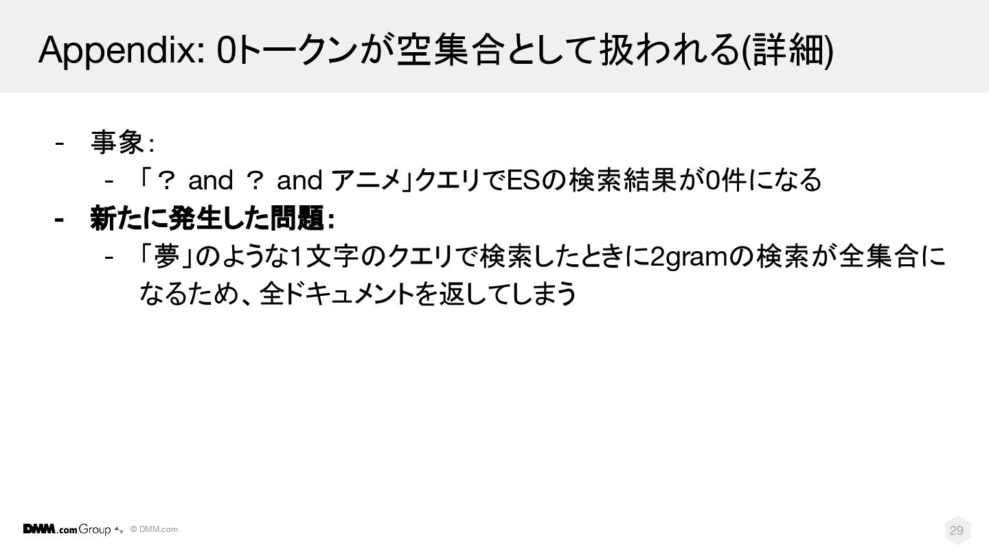 © DMM.com 28 Appendix: 0トークンが空集合として扱われる(詳細) - 事象: - 「? and