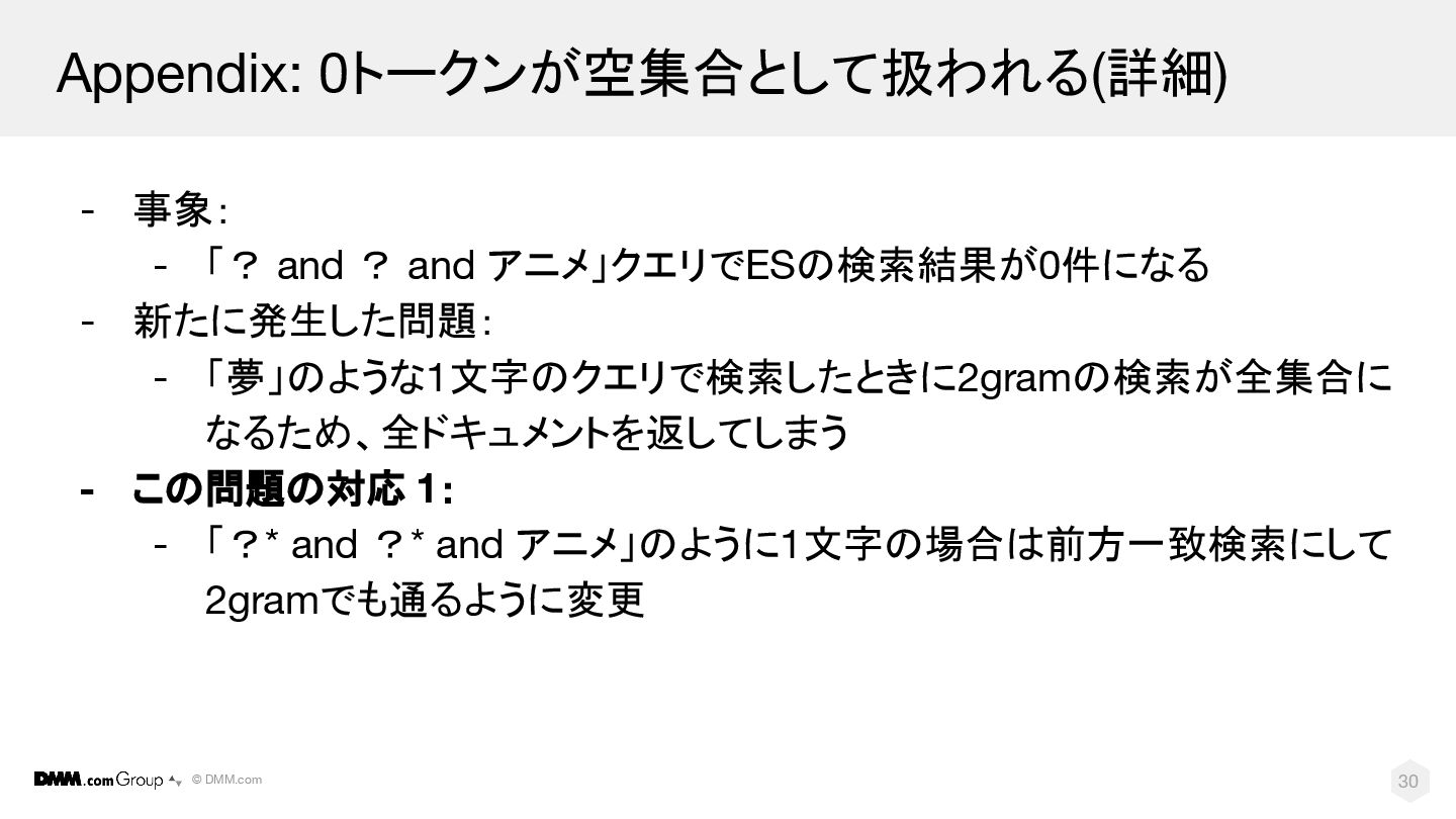 © DMM.com 29 Appendix: 0トークンが空集合として扱われる(詳細) - 事象: - 「? and