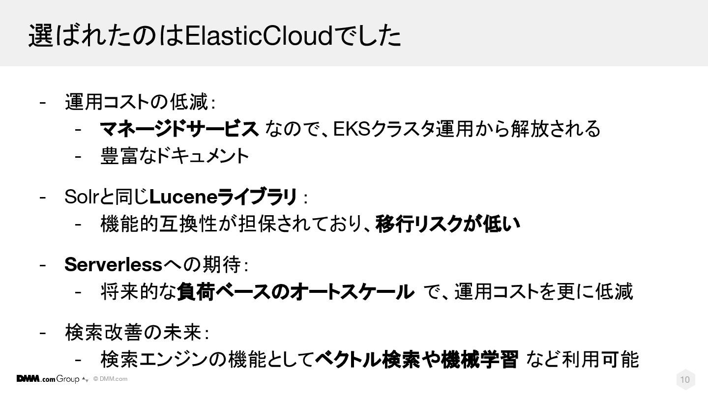 © DMM.com なぜSolrからElasticCloudに移行したか