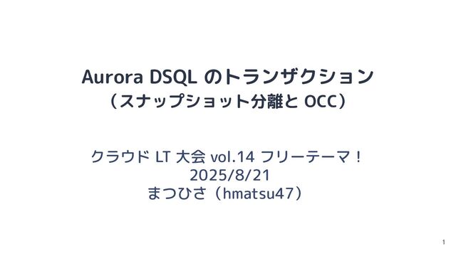 110 WHERE id = 1; ・トランザクション B(開始〜データ更新) postgres=> BEGIN; postgres=*> UPDATE hoge.fuga SET val = 120 WHERE id = 1; ・トランザクション A(コミット) postgres=*> COMMIT; ・トランザクション B(コミット失敗) postgres=*> COMMIT; ERROR: change conflicts with another transaction, please retry: (OC000) 同じデータ行を更新しようとした場合 [1] 25