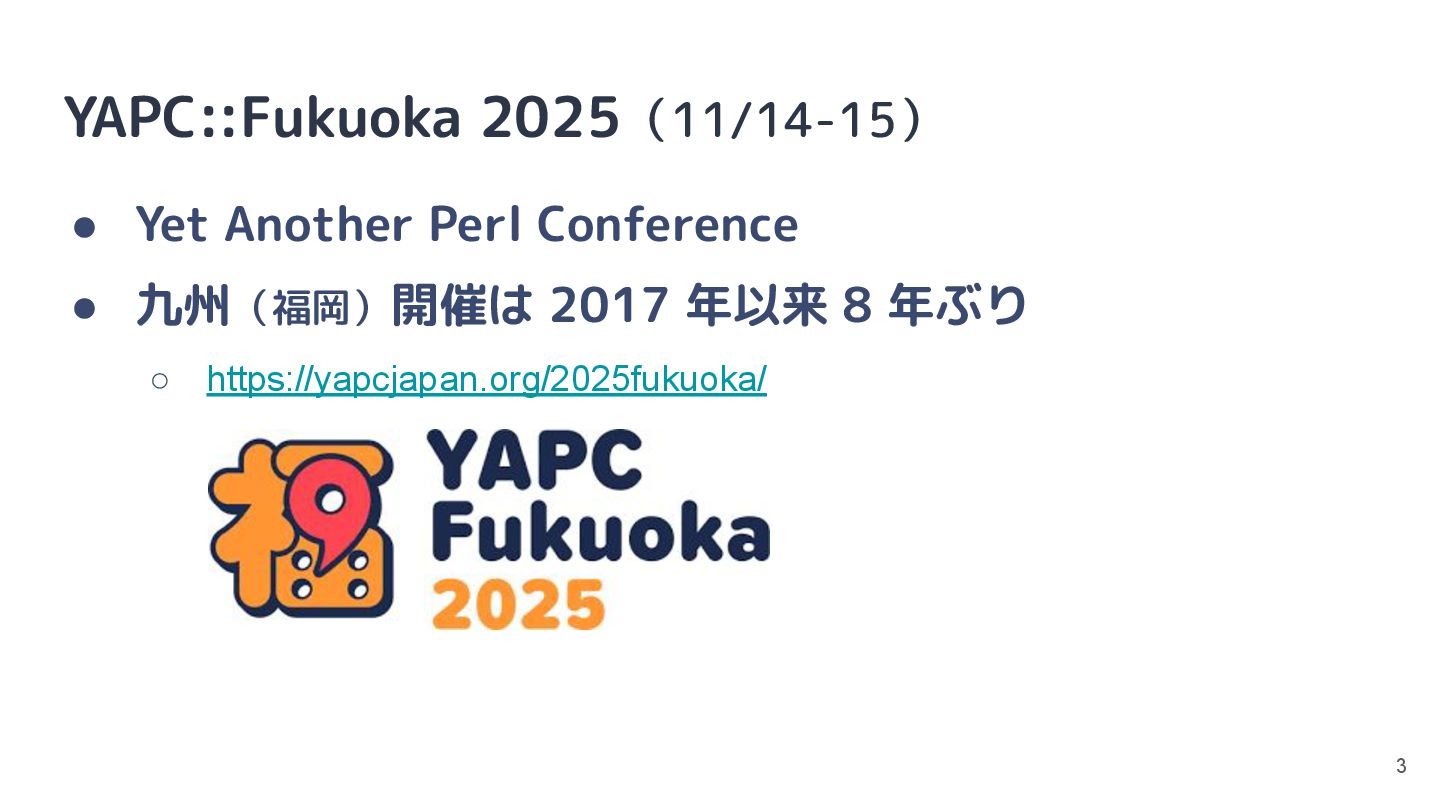 年以来 8 年ぶり ◦ https://yapcjapan.org/2025fukuoka/ 3