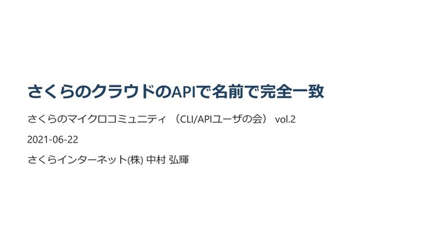 さくらのクラウドのAPIで名前で完全一致 さくらのマイクロコミュニティ (CLI/APIユーザの会) vol.2 2021-06-22 さくらインターネット(株) 中村 弘輝