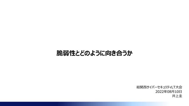 コンテナ化などを用いて、更新が簡単にできるようなシステムを最初に作る ➢ 更新ができないシステムは、設計時から更新することを考慮されていないから ✓ 設計時の不備を、運用側に押し付けられている、ともいえる ◼ 利用している環境を理解する ➢ 利用しているソフトウェア/ライブラリなどが何かを、知る必要がある ✓ 設計時にそれを考慮して作る、SBOMのスキャナなどを利用する、などして自動化をしたい ◼ 要求に合った、脆弱性情報収集などを行う ➢ まずは「脆弱性があること」を認知しないと何もできない ➢ 利用しているソフトウェアを把握していれば、それだけを見ればよいので、見る対象を減らせる ◼ 対応をフレームワーク化する ➢ 毎回どうするべきかをその場で考えるのではなく、判断基準を作ってそれで対応方針を決める方が良い 脆弱性対応は日々続いていくので大変ですが、自動化やフレームワーク化して対応負荷を下げていきましょう。 (いろいろ考えるのは大変なので、更新できる環境で構築し、日々更新していくと楽かもしれませんね。)