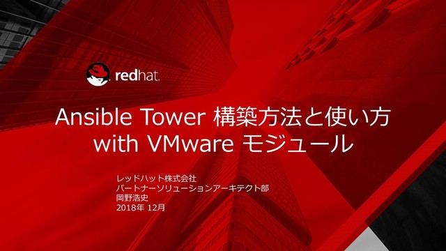 Slide Share で公開している Rev 2.2 の更新Verです。資料はAnsible Tower をハンズオン形式で学んで頂くことを目的にしています。こちらバージョンから、Ansible2.5対応となっています。Ansible2.5では、VMwareモジュールがデータストア操作可能となっていますので、以前PowerCLIで書いていた内容を、モジュールで記述しなおしています。また、資料に関しては、各所見直しを行い、権限委譲のハンズオン等も充実させています。