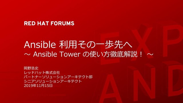 RED HAT FORUMS Ansible 利用その一歩先へ ~ Ansible Tower の使い方徹底解説! ~