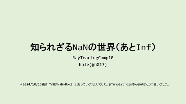 レイトレ合宿10(*)のセミナー発表スライドです。 * https://sites.google.com/view/rtcamp10/ - 2024/10/15更新:V8はNaN-Boxing使っていませんでした。@TumoiYorozuさんありがとうございました。