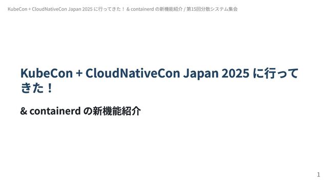 KubeCon + CloudNativeCon Japan 2025 に行ってきた! & containerd の新機能紹介 / 第15回分散システム集会 1