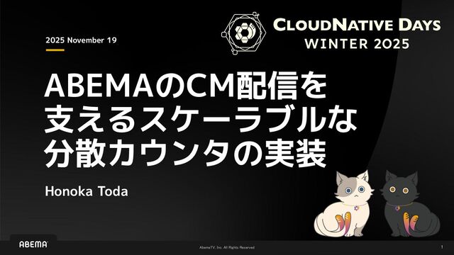1 ABEMAのCM配信を 支えるスケーラブルな 分散カウンタの実装 2025 November 19 Honoka Toda